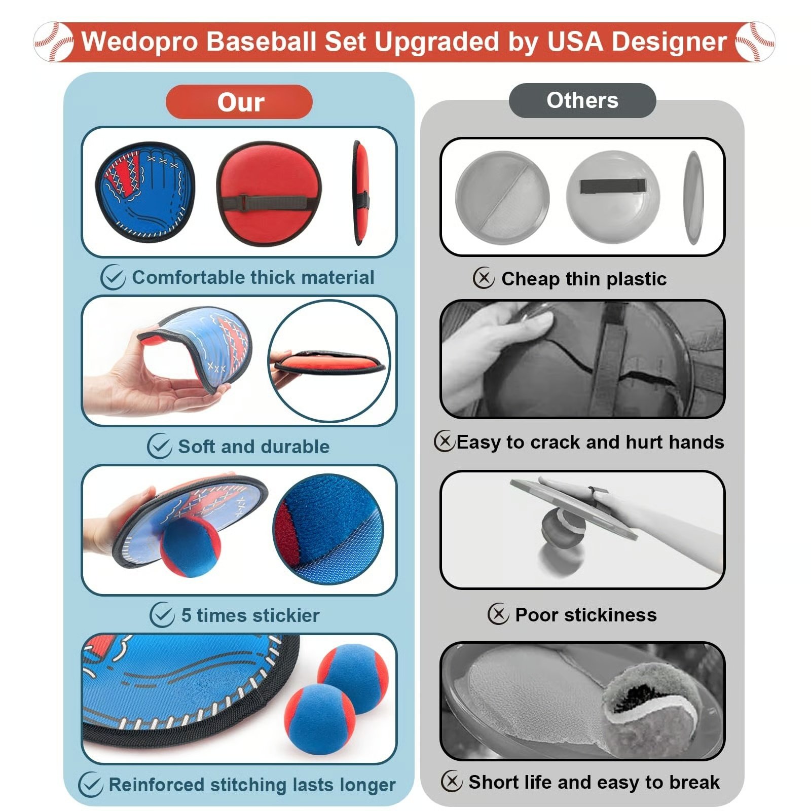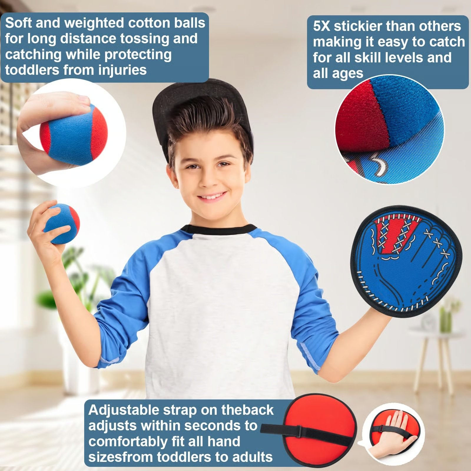 💪 Ultra-Sticky & Durable: Made with premium EVA and upgraded Velcro, the paddles are bigger and extra sticky to maximize catches. Safe for both kids and adults, this upgraded version guarantees endless hours of outdoor fun. (Note: Stickiness adjusts to ideal consistency after a few plays.)