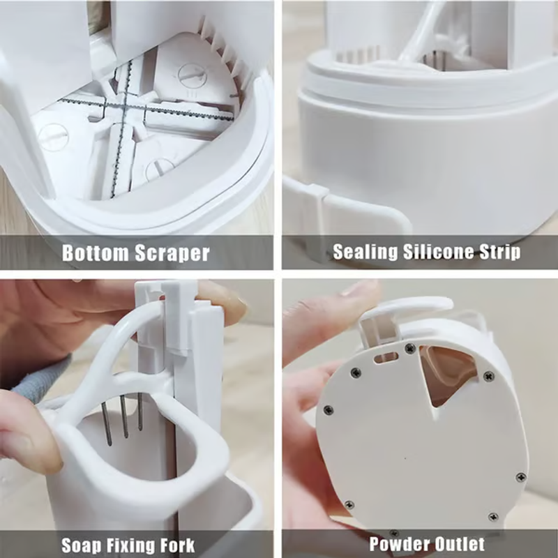 Say goodbye to soggy soap, avoid bacterial growth, and enjoy a clean and refreshing bathing experience. Unlike traditional soap dishes, use the bottom scraper to grind your soap into fine powder. Just press the button of the grinder to easily get the powder.