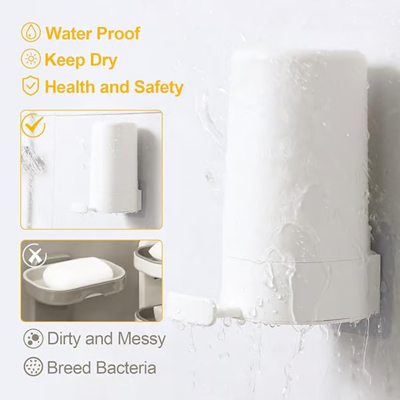 No tools required, no drilling required! The packaging comes with a strong adhesive for easy installation, protecting your walls and saving space. Suitable for places such as bathrooms, showers, kitchens, laundry rooms, RVs, etc., it is an indispensable product for every home.