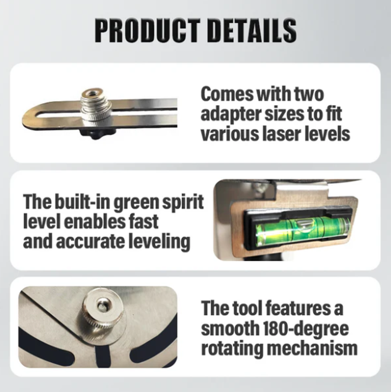 UNIVERSAL COMPATIBILITY WITH ADAPTERS INCLUDED: Comes with two adapter sizes to fit various laser levels, making it versatile for different devices. The secure attachment system keeps the laser firmly in place during operation, preventing slippage or misalignment.
