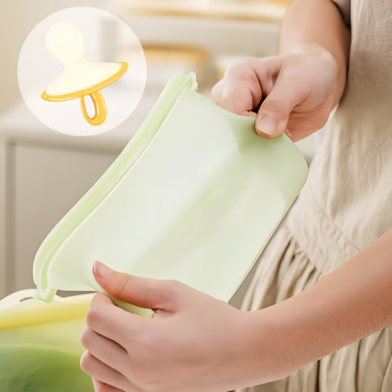 Upgraded Design, More Convenient Than EverThis upgraded version improves on our original silicone bag with smarter structure and better usability. Made from the same safe, food-grade silicone used for baby pacifiers — soft, durable, and odor-free.
