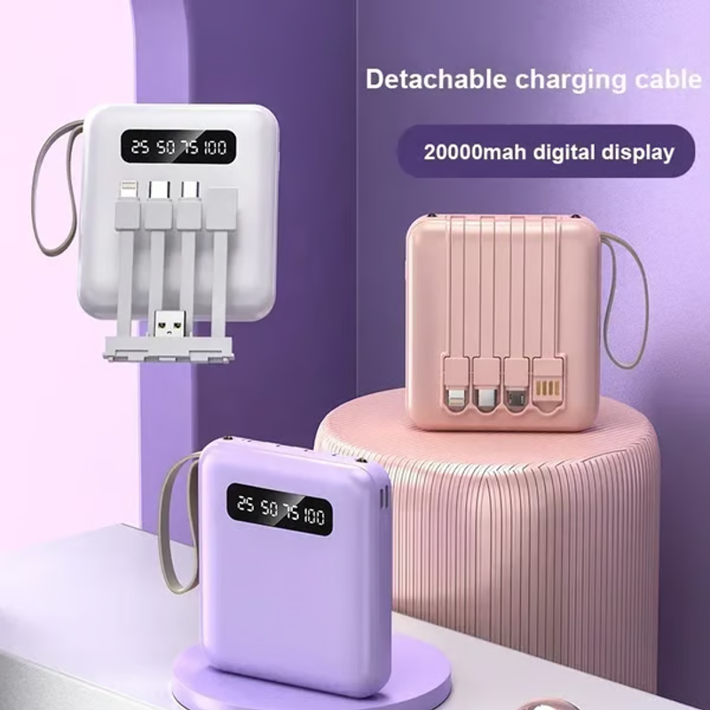 [ Portable charger Built in Cables ] This built in cables portable charger power bank features built-in iPhone, USB-C, and USB-Micro cables, making it a one-stop solution.