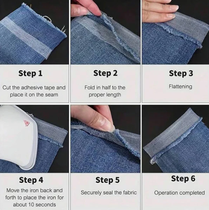 EASY TO USE, NO SEWING REQUIRED: Simply cut a suitable length of tape, place it in the seam, and lightly spray water on both the tape and fabric to prevent shrinkage. Iron for 10-15 seconds at 100°C/212°F to activate the adhesive. No sewing, no hassle—just quick, professional results.