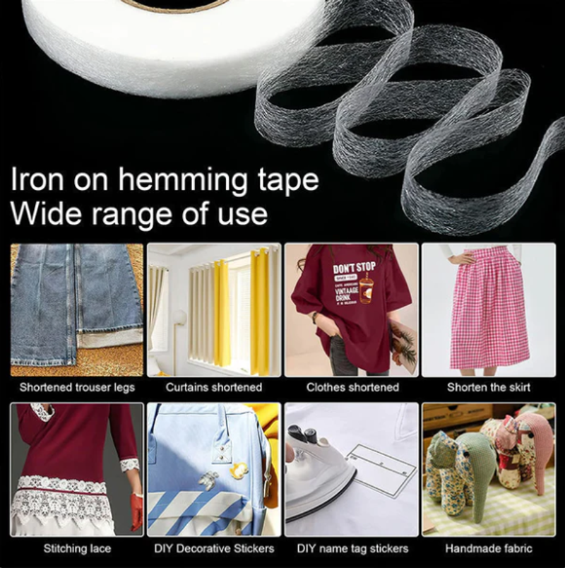 WIDE RANGE OF APPLICATIONS: Perfect for a variety of projects, including hemming pillowcases, double backing ribbons, curtains, repairing jeans, trousers, dresses, shirts, and more. Also ideal for fabric arts and DIY crafts, offering endless creative possibilities.
