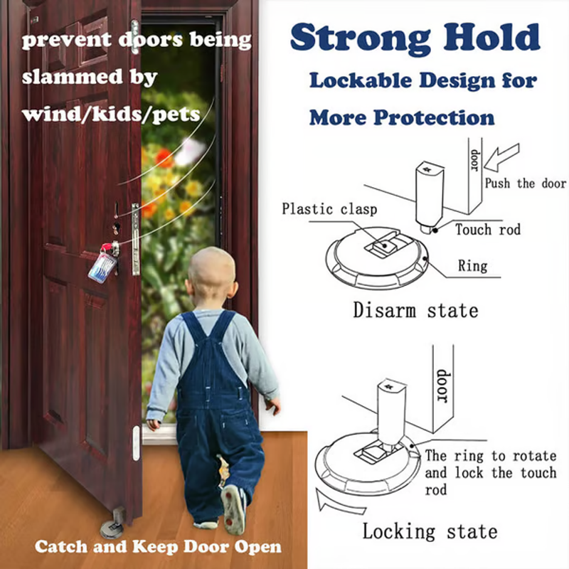 Protect your loved ones from door-related accidents with this door stopper’s smooth, safe edges. Its child-friendly design keeps doors from slamming shut, preventing injuries to little fingers and keeping pets safe from accidental door closures. It is ideal for families with young children or pets, adding a layer of safety and peace of mind to your home.