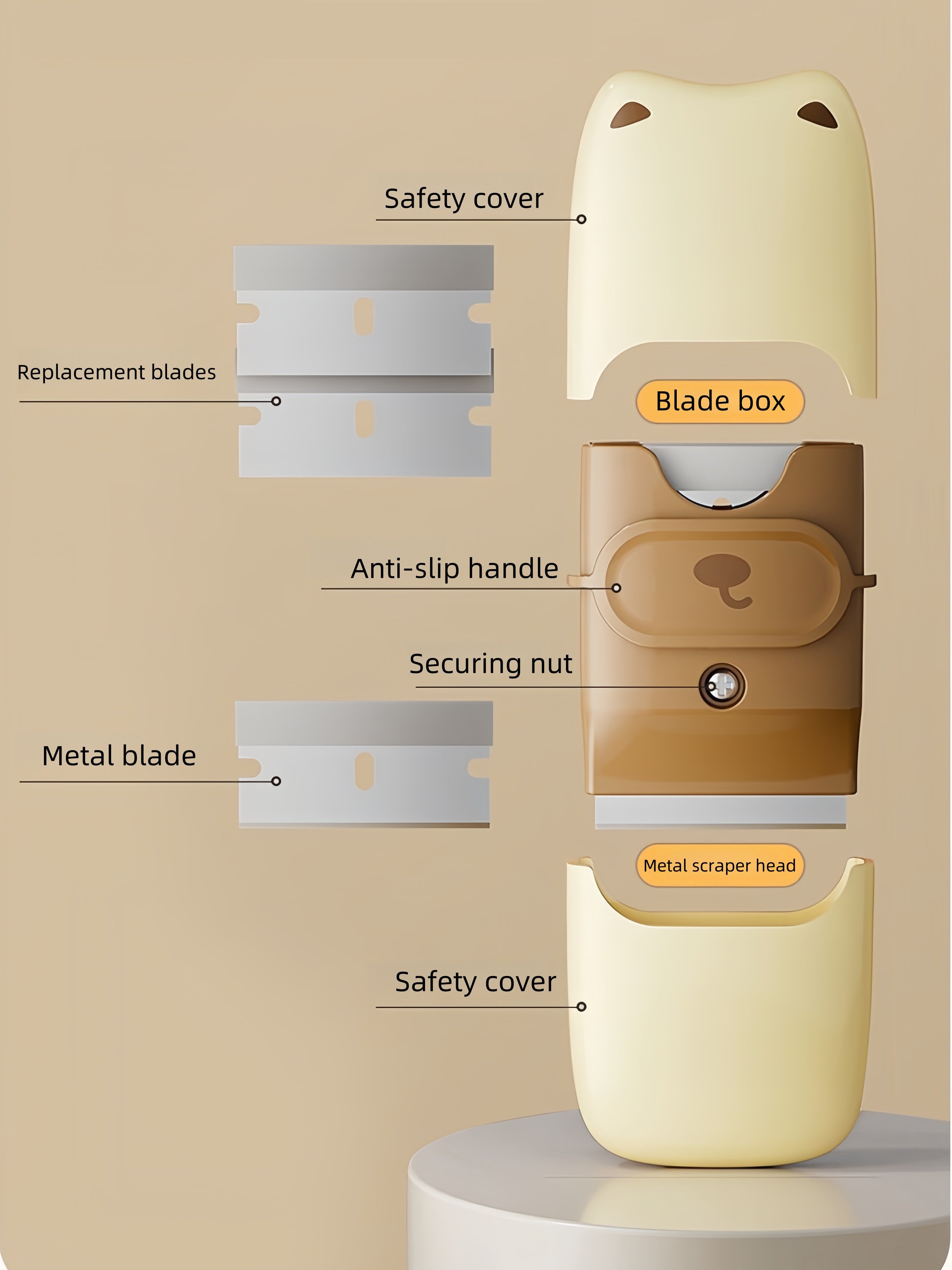 The must-have compact tool for every household! Effortlessly removes adhesive, grime, and sticker residue without damaging surfaces. A powerful mini scraper with serious cleaning power.