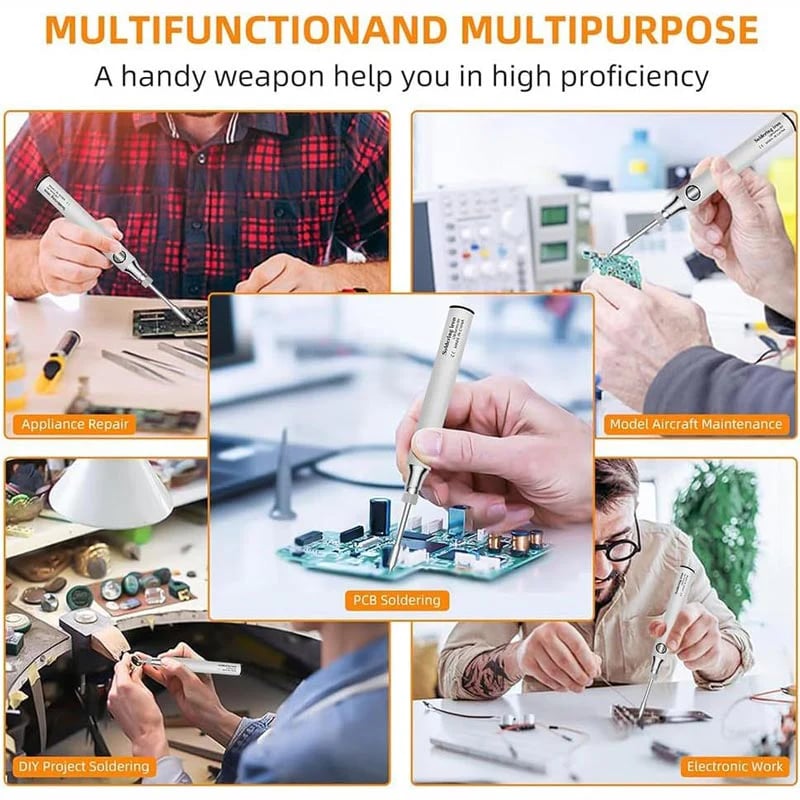 POWERFUL 900MAH BATTERY: Equipped with a 900mAh battery, this soldering iron provides extended use on a single charge, ensuring you can complete your projects without frequent interruptions for recharging.