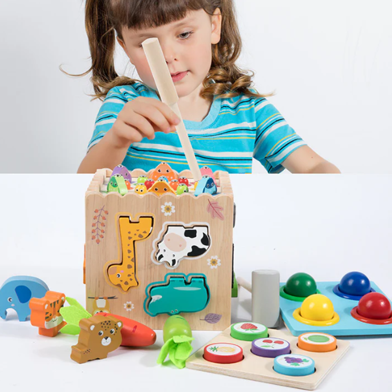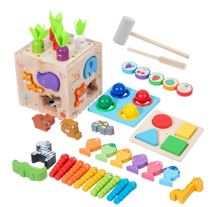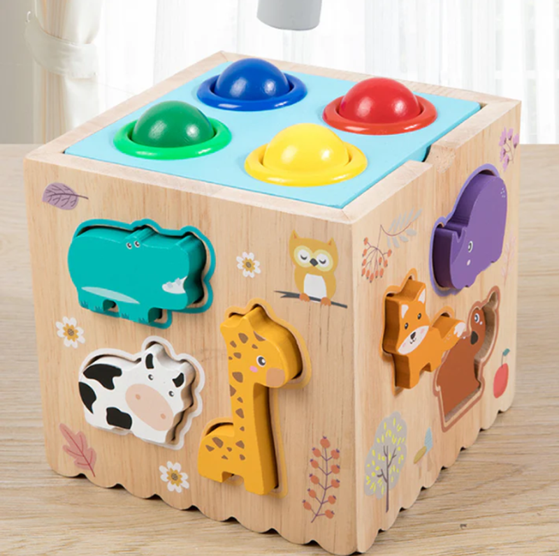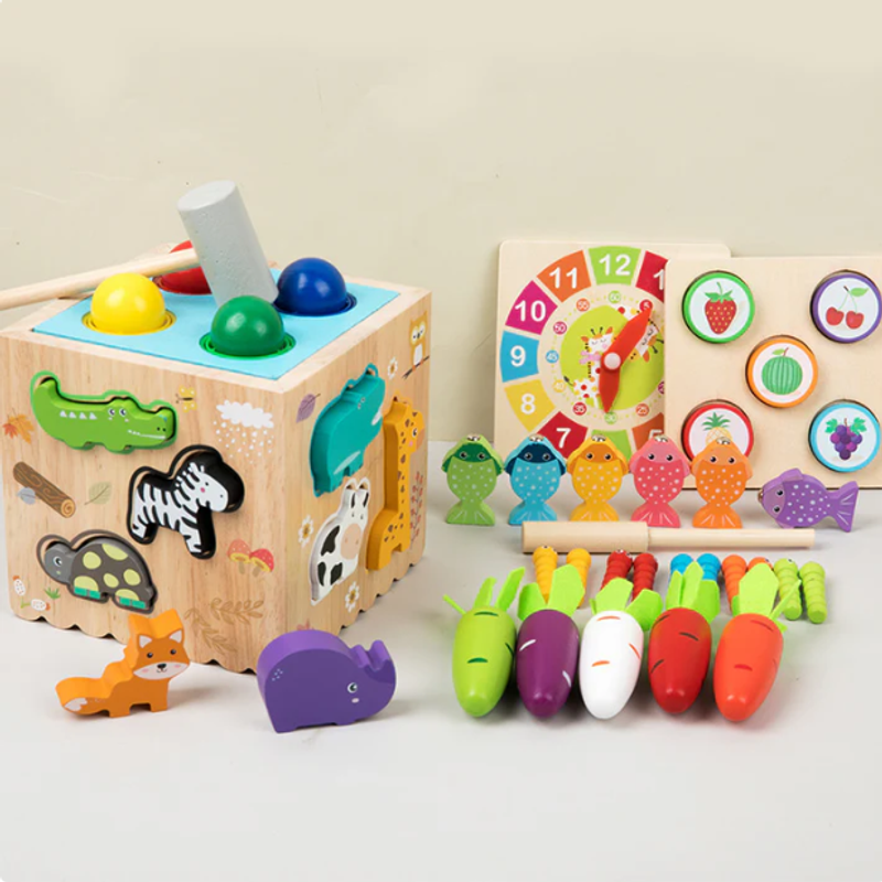 EIGHT ENGAGING GAMES – The activity cube brings together eight interactive games, including carrot pulling, ball tapping, fishing, animal matching, clock recognition, shape pairing, and fruit color sorting. Each activity strengthens logic, coordination, and problem-solving skills. With so many challenges in one compact unit, toddlers receive a balanced and enriching playtime that combines education with entertainment.