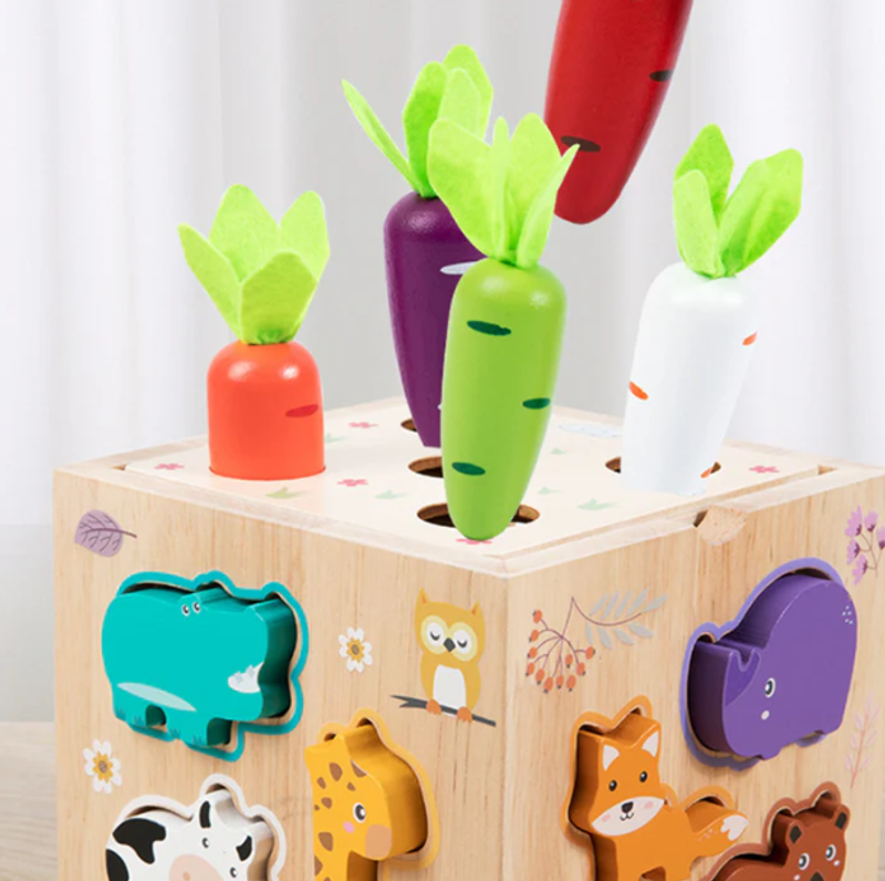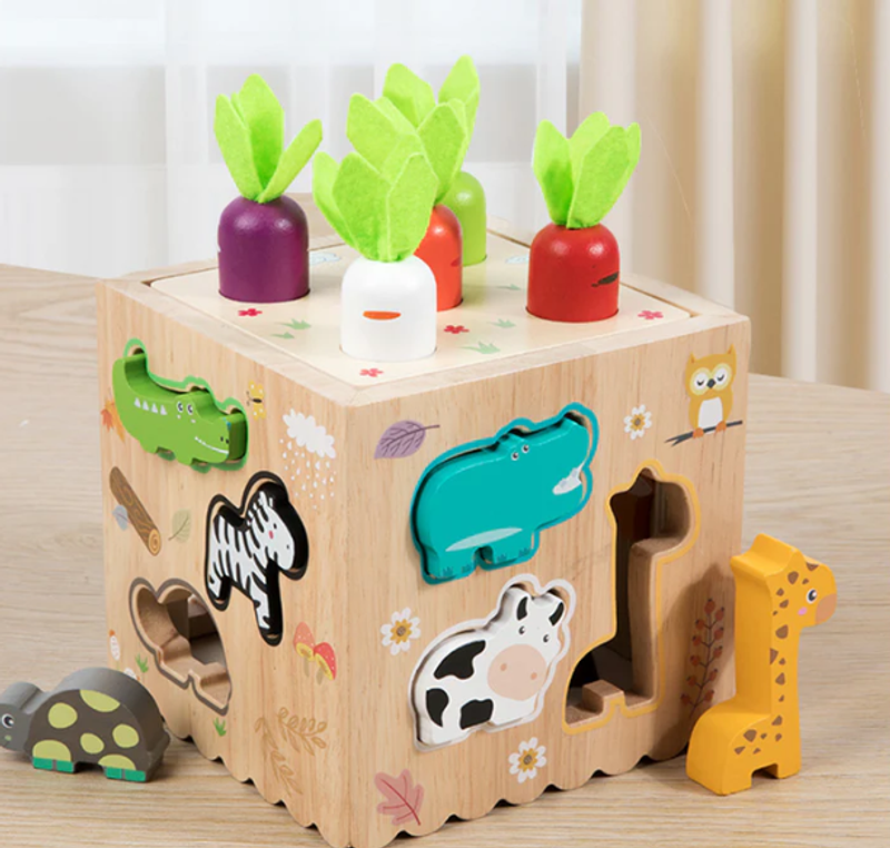 IMAGINATIVE PLAY – More than a learning tool, the cube invites children into imaginative worlds. Whether acting out farming with carrot pulling or pretending to fish, toddlers develop creativity and role-play abilities. These playful scenarios encourage storytelling, cognitive flexibility, and emotional expression, offering a joyful experience that supports both intellectual and social growth.