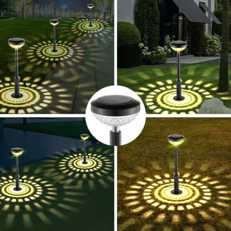 Creative Design&Attractive Pattern: Outdoor solar pathway lights are designed well with convenient external switch, excellent lighting design greatly meets your different lighting and decoration needs, such as Halloween and Christmas. Solar yard lights with the black exquisite appearance and crystal transparent cover looks more advanced and textured, which casts charming patterm raise your yard grade and house value, also allow you to enjoy the light shows every night