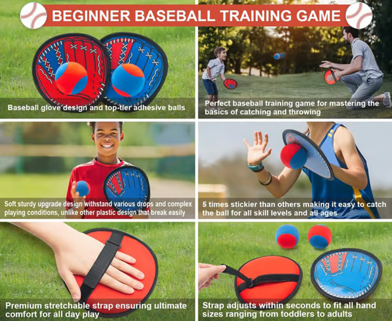 💪 Ultra-Sticky & Durable: Made with premium EVA and upgraded Velcro, the paddles are bigger and extra sticky to maximize catches. Safe for both kids and adults, this upgraded version guarantees endless hours of outdoor fun. (Note: Stickiness adjusts to ideal consistency after a few plays.)