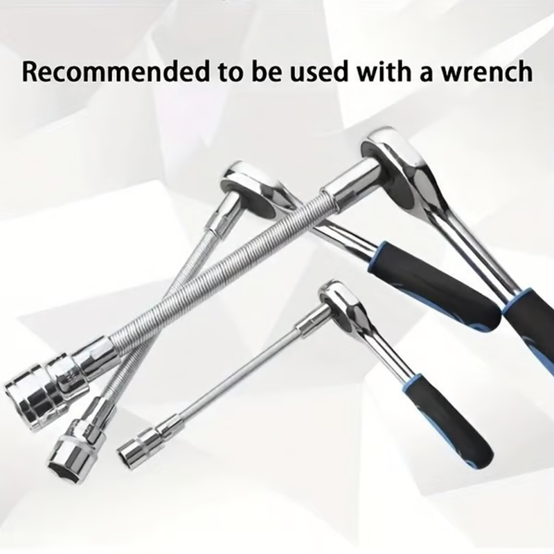 INCLUDES: This flexible socket extension set includes one 1/2-inch drive(10-inch length),one1/4-inch drive (6-inch length) and one 3/8-inch drive (8-inch length) extension. Easy to solve the problem of narrow corner that conventional tools can't reach in auto repair work.