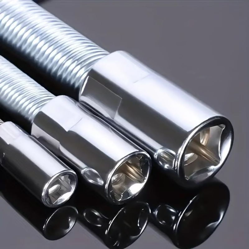 HIGH-QUALITY CONSTRUCTION: Our flexible socket extension rod is built to last. The ends are crafted from CRV (Chrome Vanadium) steel, ensuring durability and resistance to corrosion. One end features a spring-loaded detent ball and an anti-slip steel ball, providing a secure grip and enhanced locking force.This feature enhances precision and minimizes the risk of slippage, even in challenging work conditions.