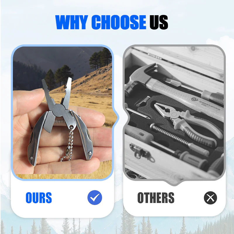Multi-tool: Combines the functions of pliers, wire cutters, Phillips screwdrivers, flathead screwdrivers, files, knives, can openers, and bottle openers in one tool. Suitable for everyday repairs, outdoor activities, or emergencies.。