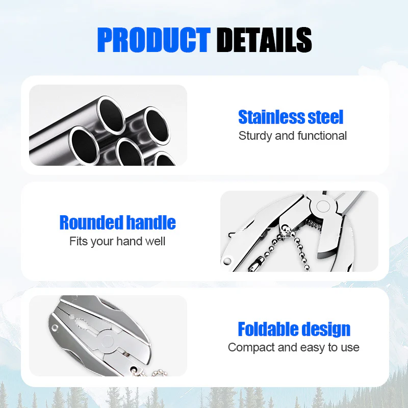 Stylish Silver Exterior: The polished silver coating gives this multi-tool a stylish and professional look, making it the perfect gift for DIY enthusiasts, repair technicians, backpackers, or anyone who values practicality and portability.。